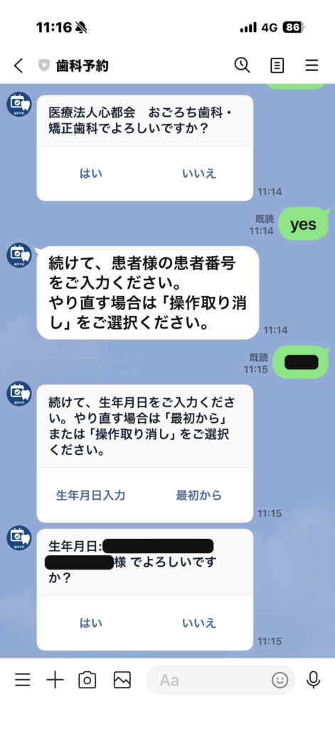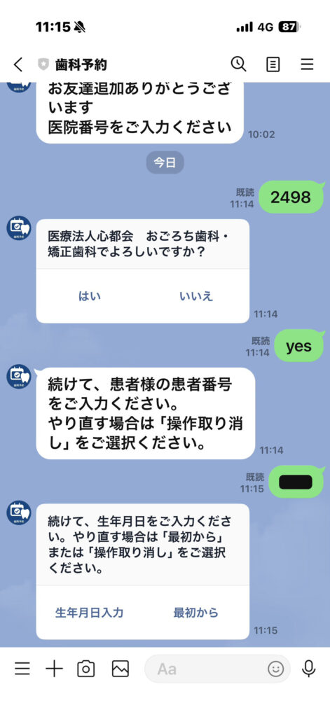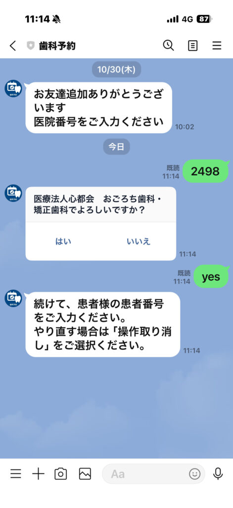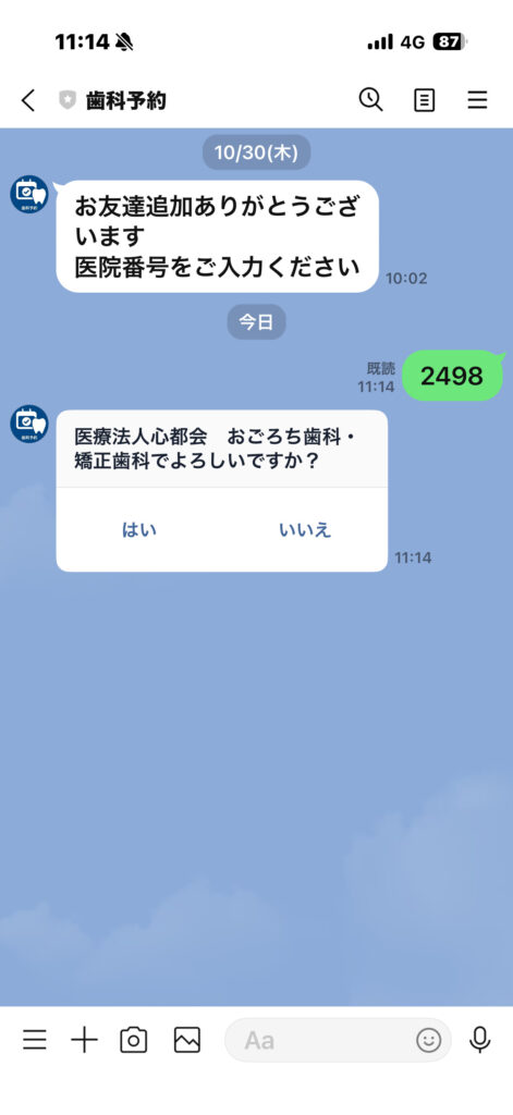 医療法人心都会おごろち歯科・矯正歯科である事を確認して「はい」を選択。